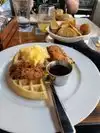 First time here and it wasn't disappointing, the Chicken and Waffled is unbelievably good, made with cornbread batter that gives is an amazing flavor. Make sure to get the bottomless memosa to make it a full day. Deliscious and filling. Only real issue if I have to list one is the service moves a little slow. I had a reservation and still had to wait 15min to get a table and even then it took another 10-15min to get my order taken.