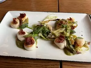 Food was wonderful! We had a vegan and vegetarian and they loved their choices. Best part was our server Jamie who was both attentive and entertaining. Pizza was excellent and desserts were great. Dinner was so good we went back for dinner the next night
