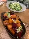 Appetizers were delicious, and desserts too. Entree was disappointing, I got burned lamb chops, and flavor was ruined with the excessive charring on the meat. Also the food took quite a bit to get to the table and the temperature was cool. Environment was nice, and staff was very friendly, but for me and my wife it’s a one time experience, not really craving going back.