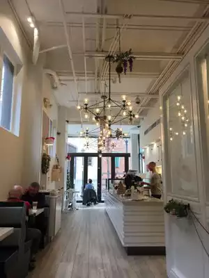 The place was crowded on a Tuesday at 1:30pm. We did not have a reservation. We were delighted that we were able to be seated. The servers were all great. The decor was lovely (I especially loved the hanging lamps). The food was just so delicious! Portions were great and the price was right. I loved the vegetarian options. I'd go back in a heartbeat!
