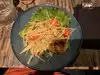 Up Thai Not a bad place to pick for another Thai eatery mission. Luckily we got there early, so we got a good table. We had Gunn, a good server. Of course, we had papaya salad to start. Papaya salad has been on my to-eat list whenever I visit a Thai restaurant. This place made a good one. I ordered red curry with shrimp, and my friend had green curry with vegetables. I loved my dish! The curry sauce was rich in flavor, not watery. I’m unsure whether the sauce came from a packet or homemade as I’ve been trying a few curry sauces at a few places, and some taste similar. This was thicker in flavor, and more herbs tasted in the curry. It was great! I tried the green curry, and that was great too. After we finished our dinner and were ready to step outside, the line was pretty long. Good thing we got here early for dinner. We enjoyed our dinner.