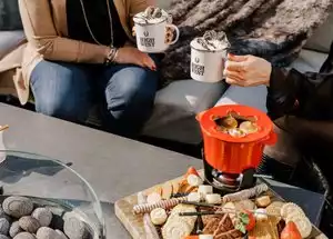 Winter, Curl & Chill We loved the ambience and view of the terrace area. The seats, cushions, blankets, fire pits and lights were nicely done. The service was slow to start with, to sit down and then to order drinks, but it did pick up. We only had an hour for our booking so only had time for 1 drink in the end . The live (pitchy) violinist on the upper terrace clashed with the music on our terrace, which ruined part of the ambience. We were very confused as to why we struggled to book a table as we were the only ones there for most of our reservation. The value is very over priced, $25pp to sit down and $20 per cocktail, plus tax and convenience fee. Overall this 1 hour, 1 drink experience cost over $100!