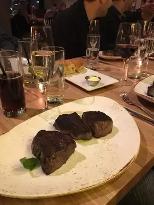 I was hungry for a steak, and this was close to the hotel. Walking in, I immediately thought, this will not be cheap. I was right, but it was worth it. They have their own butcher shop and they age the beef in house. It does make a difference. I had the the 8 oz. filet. They should probably put it on a smaller plate, because when served, it looks like an inflated hockey puck, but it was more than enough. All of the sides are served 'family style', and I wanted some mushrooms (grown in house), but not a family portion. So when I told the waiter that, he arranged to get a half order from the chef. The meat was done perfectly (med rare), and the aging makes a huge difference. It was probably over spiced, but very flavorful. Wine was very good but also pricey. Highly recommended.