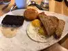 The food was excellent ! Eggs cooked perfectly the potatoes roasted and creamy inside you must try the chicken cherry sausage it’s out of this world!!