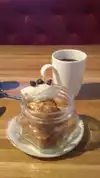 My harvest salad portion looked small but turned out to be perfectly adequate for my appetite level. It was a bit sour for my taste but taste is individual. I imagine it works for other diners. My two friends had been here before, knew the menu and seemed satisfied with their selections The issues started with desert. My cheesecake looked and tasted lovely. The cheesecake and another desert arrived promptly. The third member of our party must have waited a good 15 minutes for hers. Our waitress was nowhere to be seen. We had to ask two other employees before her desert finally arrived. When our checks came, I was charged $5.00 for a tea which I did not order. I asked for a corrected bill. The waitress refused. I took out my pen and crossed off the incorrect charge and redid the math. Our waitress reprimanded me not to write on it, became somewhat unpleasant and demonstrated a bit of "attitude." It's unlikely I'll return. This interaction left a bad taste.