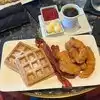 Great little lounge. Great atmosphere and service. Did not realize they served breakfast. We had avocado toast, chicken and waffles, a mimosa and a Vdara mule. Quite tasty and enjoyable! A new favorite spot for us! Highly recommend!