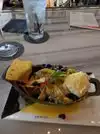 A very poor experience The food was cold and fairly tasteless. For what I paid I was very disappointed. I had the Steak Frites , which was basically a couple of strips of lukewarm meat on a bed of cold French fries. I was staying in the Vdara so we were very disappointed this was the offering considering we loved the hotel itself. The service was friendly but very disorganised. Overall a well below average affair and I would not visit here again.