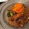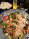 We were staying at an apartment only 3 blocks away, so we walked over here for dinner on Friday, December 29, 2023. Arrived about 6 PM and we were seated immediately even though the place was nearly full. This restaurant is very decorative and lighted only by the hundreds of small LED lights, and the centerpiece... a 50 foot paper dragon hanging from the ceiling that snakes throughout the restaurant and is constantly changing colors. Walking through here gives one a feeling they are tripping on some psychedelic. The front room is a bar and some seating, then a narrow hallway goes back to the main dining room where we were seated. I started with a cocktail called the Hidden Dragon -which is a Thai style Old Fashioned. My wife and I shared a delicious app plate of Edamame, good but rather plain. She ordered the Spicy Noodle Kec-Mao. I had the Pla-Abb which is marinated and grilled Tilapia served in a fancy tall tiered pottery dish. Both plates were deliciously spicy. Mine made me sweat, which was an indication of my enjoyment as well. The servers wear iPads hanging around their necks or waists, and they stand erect and motionless among the tables when not taking orders or serving food. It is a little strange, but that must be what they are told to do. It was a little too dark here for dining, romantic but I like to see my food. We enjoy Thai food and this is a pretty good one.