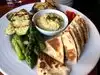 Valanni is a great location to grab a meal before or after a show. There's a small area to eat outside, or enjoy the cozy interior dining area. The small plates are great for sharing and the food is extremely good. We shared four plates, the hummus and grilled vegetable platter is very large served with freshly baked pita, grilled chicken kabobs with a lime vinaigrette, butter-poached shrimp flatbread, and crispy brussel sprouts. Every dish was tasty with fantastic flavor. Our server was really hustling, covering tables inside and out and yet they were still very attentive. Definitely would plan a return visit!