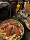 Beautiful atmosphere, very lively in the evening. Good beers and good cocktails. Excellent food. The NY steak is magnificent and the home fries exceptional. Prices are high but worth it.
