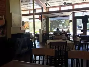 This historic restaurant has outdoor porch seating as well as cozy small inside dining rooms. Lunch menu had standard selections (wonderful Angus burger with fries, $14) and a few surprises (sliced hanger steak, tender and perfectly cooked, $18). Food is well prepared but somewhat pricey. Service was attentive but food took at least 20 minutes to arrive since everything is individually prepared. Not good if you are in a rush, but perfect if you want to watch the baby geese splash in the creek 50 feet away, or watch the walkers, joggers and cyclists pass by. Lunch crowd thins out by 1:30 with your pick of tables. They also take reservations (good idea on weekends or if you want a porch table at peak times).