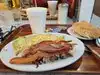 Looking forward to a mid morning breakfast with my wife,,,a very short walk from hotel,,,very long line but moved fast,,,, large menu selection for cafeteria style restaurant,,,food prepared extremely fast, everything omelet was my choice, while my wife ordered eggs over easy,,, great portions, excellent prices, great food