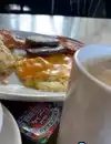 This cafeteria efficiently turns out a wonderful breakfast. The folks behind the counter are friendly and helpful. Our Mediterranean Omelets were perfectly cooked - neither runny nor overdone. The combination of feta cheese, tomato and spinach (#5) was perfect. The hash browns and biscuit rounded out a perfect breakfast!