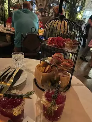 Absolutely incredible food experience that I will not forget!!! The stuffed baguette was the best thing I’ve tasted in a long time. The Ceasar salad was served in an herbed Parmesan crust bowl, which was very unique. The crème brûlée donut was so incredibly unique and delicious…it was a donut with a cream brûlée crunch on the outside and crème brûlée filling. The ambiance and decor was so beautiful and unique. The decorations may have been a little cheesy on their own, but put together it was a beautiful place. My only criticism would be that the cocktails were not drinkable to me in my personal preference. The “It’s My F-inf Birthday” cocktail was all show but tasted really bad. The espresso cocktail was undrinkable and it needed some cream. But it might just be me. My friends loved their mescal cocktail and the margarita. All around, a wonderful experience.
