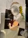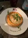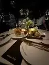 We made reservations for late evening and had a table off to the side for 2 all by ourselves. The restaurant is so beautiful with a huge flowered sphere structure from ceiling revolving constantly. Decorations were lovely. I enjoyed a French Poodle drink with crab coquettes and my husband had a Bora Bora drink with Creme brûlée beignets. Our French waiter was so attentive and very nice. I just was surprised with rough paper napkins. I would have preferred cloth napkins for the evening,