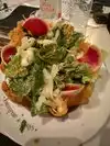 Beautiful atmosphere, small menu. Caesars salad bland, no anchovies. Pot pies small and not much too them. No bread offered, only a purchased baguette if wanted. Not worth the money, plus inattentive waiter and poor service.