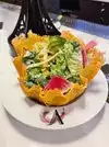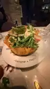 I recently ate at Vanderpump à Paris at the Paris Hotel in Las Vegas and, unfortunately, found the experience more about flash than substance. Service got off to a rocky start—I sat at the bar for nearly ten minutes before anyone acknowledged me. The menu was tiny, hard to read even with glasses and a flashlight, and still difficult even when they brought a larger one. Food-wise, options were limited—mostly pot pies and a $65 steak served no sides or veggies (fries the only available side). I gave in and tried the chicken pot pie, which was bland and tasted processed. I was also pushed to order a Caesar salad that came in a giant taco shell and looked more like a fast-casual dish than something upscale. I ordered a Moscow Mule, but with no copper mugs on hand, the bartender added pepper as a workaround—odd and not tasty. The manager did comp my meal, which I appreciated, and I still left a tip. This review isn’t meant to slam the place, but to offer honest feedback. Vanderpump à Paris leans heavily on its name, but if you’re expecting true French dining, you may want to look elsewhere—at least for now.