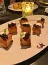We went for late night drinks and the ambiance was dark yet romantic. We sat at the bar and enjoyed observing the cocktails being made. It’s evident they are intentional with the visual quality of their drinks. Very photo worthy. The menu is a bit overwhelming to read through and the cocktails were just okay - especially for the price point.