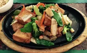 Best selection of all vegetarian/vegan Asian dishes I've ever seen. Everything our whole group had was tasty - and most of the folks were skeptical meat eaters. Very fresh veggies, tasty sauces, good rice. Can't go wrong!
