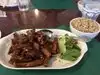 Great food great service! Cute little set up, very local spot. i live down the street and do take out all the time! Cool stuff around the plaza it's in too. All vegetarian, but it's just like the real deal (or as close to it as possible!) I don't know how they do it! Awesome spot.