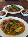Pleasant surprise, although afterwards we realize it was rated highly on TripAdvisor. My wife and I shared lunch we had curry vegetables with t a m a r i a n d sauce and beef with broccoli. Both were very tasty I've never had a t a m a r i a n d sauce that I know of neither of them were very spicy but that's the way we want them you can order more spice I guess.
