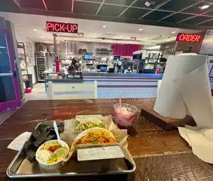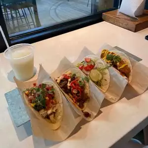 You must try! Our fav taco place and consistent comparing to Houston location. One of the best guacs. incredible Paneer and shrimp tacos. They also have this great Mexican corn/chowder type side. nom nom. Perfect taco serving holders, tons of seating, tater tots and fast service.