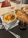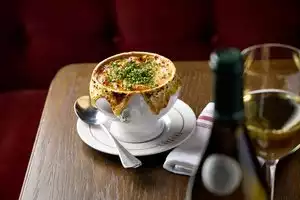 Salty food from the baked brie down to the french onion soup. The bread wasnât fresh, hard and overly toasted. Oysters were small but ok. The booth table was uncomfortably tight. Service was subpar. Ordered a couple bottles of champagne at $80 a pop. Then found out they retail for $19. Talking about up charging, most def felt bamboozled. The restaurant gives, wanna be more than what it is. $293 âŠwasnât worth it at all.