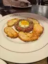 Beautiful restaurant right off Michigan Avenue. Had seafood for appetizer and it was good. However entrees were mediocre and overpriced. Chicken sandwich was supposed to have harissa but there was nothing, just plain chicken sandwich. Several of us had steak frites. meat was tough and over seasoned. It was also not the right cut of beef for steak frites. le Bouchon or Mon Ami Gabi are much better. It was missing the beurre maĂźtre dâhĂŽtel. Fries were super salty. Lobster cob not that great. Service is weird as the waiter brings the silverwareâs in a box after the meal is served so we were all waiting for forks and knifes with our food in front of us. Same for coffees, they were getting cold waiting for the spoons. Desserts Ok. Will not go back