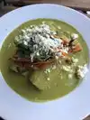 I ordered the Paleo Verde for $15 with shredded pork. It was amazingly delicious with fresh veggies coked in that weren't soggy or over cooked. My son got the chili releno and said it was very good also. The seeds mixed into the quinoa based stuffing were spicy. We sat upstairs with a view out the forested landscape of Hillsdale. Frank Sinatra znd other classics wereplaying. I was surprised to nice fresh veggies in a rainy city at a Mexican restaurant! Bravo, Verde Cocina!