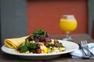 Eggs and Veggies. Healthy, delicious and a can't miss. Try it you will not regret. They have a cart at Saturday market at Portland State U. Yummy.
