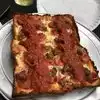 Here now and by far some of the best pizza I’ve ever had. I’m telling you do not miss this. Old school square with great crunchy crust.
