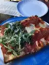 We came to Craft Pride because we heard about all the great Texas beer and live music, and when we saw the pizza food truck we were too tempted to say no. We ordered The Detroitan (I think that's the name) and The Hawaiian. The Detroitan had pepperonis and some marinara sauce on top of the cheese and the Hawaiian had the traditional pineapple and bacon. The crust is a very airy and crunch thick crust. It's not like deep dish, but it is very good and easy to eat with one hand. Overall, I really enjoyed the pizza and experience. I would recommend it to anyone looking for good pizza in Austin.