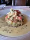 All the food was top tier and delicious! Our waiter Venny made our night perfect! We had the crab cake appetizer, Caesar salad, filet mignon, potatoes au gratin, and creamed spinach. The strawberry creme brûlée was the best I had.