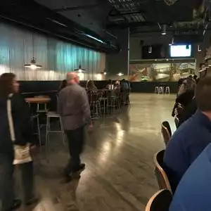 Went here when visiting Xfinity live before a Flyers game. The seating is long tables like a beer hall, also booths and tables. Great selection of beer and the food we had was very good. The burgers are huge. Great atmosphere with lots of TV's.