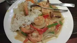 Excellent food and service with generous portions. We started with tasty and crispy vegetarian spring rolls.Then, one of us had a small bowl of lemon grass soup and the other had a small bowl of seafood soup. Both soups were very flavorful and delicious. The portion size was very generous and more than enough for lunch. In fact,we took some left-overs home with us. Service was efficient and gracious.