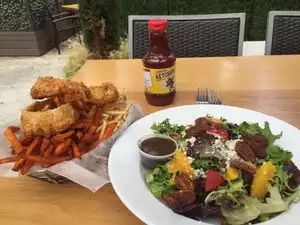 Friendly, knowledgeable service. All the staff great on each of our visits. Busy, but they cope professionally and very little waiting delays. A good variety of tasty burgers and excellent salad choices. Good value too. We will keep going back .