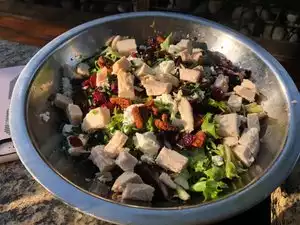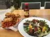Stopped in for a post workout salad and wine lunch. The salad was huge. Not an overly healthy salad, but good and filling. The onion rings looked amazing, so next time I'm ordering those. The service was fast and the staff very friendly.
