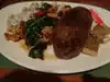 I'm not sure what it was but it wasn't a steak. Toughest piece of meat I've ever put in my mouth. Told the waiter and he suggested we order the prime rib. No offer to comp or get the manager.