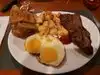 We both got the 24/7 steak special. One of our favorite meals on our trip and we ate at 22 different restaurants. Steak cooked a perfect medium rare. About 1/3 of the price of a steak at a steak house on the strip. We have been here before. Always great. We have heard that the breakfasts are super too. If you have never been here, do yourself a favor and go!