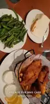 I specifically went out of my way to eat at the Village Pub and Cafe at Ellis Island. This is not a casino that I would normally visit when I am in Las Vegas. After a quick walk through of the trashy and dumpy casino, I found the restaurant. I was seated quickly by the host. I found the place to be a bit dark but relatively comfortable. I ordered their Signature Fish & Chips that I have heard so much about over the years. I got three golden brown, different sizes pieces of cod over a bed of fries. One piece was huge but the smaller one was only half the size of the largest piece. The food was piping hot. The fish itself was fresh but I thought the batter was rather plain and tasteless. The fries were seasoned well with salt and pepper. My Cadillac Margarita was well made with a generous amount of alcohol. The fish & chips were good but definitely not the best I have ever had. However, I will come back and try the Prime Rib the next time I am in Las Vegas.