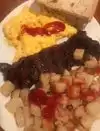 Steak and eggs special was delicious and at a fantastic price of 9.99. this situation isn't on the menu. So you'll have to ask for steak special