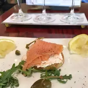 Hungry and tired ask for Ron great service. Perfect end to a perfect day of over done deals. I had the flight of whites and delicious smoked salmon it was perfect.
