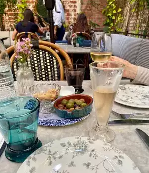 The ambiance is very special; quaint, cozy and hip. Small open kitchen visible from the patio. Service is excellent. Food is above average. We started with Olive and Mushroom Confit which we enjoyed. Main courses:Chicken, Steak Frites & Plantburger. Everything cooked to perfection however, I would have like a more enhanced flavor to the steak. Definitely recommend and will suggest making advance reservations.