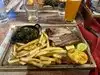 Characteristic and very comfortable place and great music. Very friendly staff and fair waiting times. The quality of the steak was superb as was the salad with three types of meat. Excellent choice and taste of beers. Very generous portions (thank goodness). Price normal. Not to be missed.