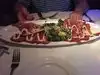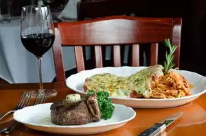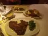 My husband and I went here for dinner. We found that the portions were absolutely huge. Service was excellent - we received a friendly welcome and were shown to our table quickly. The manager gave us each a little cup of the lobster bisque as a complimentary starter. It was dee-lish! We decided to order the mozzarella appetizer and the portabella appetizers. The waiter said they were for “sharing” - that was fine, we wanted to have a taste and could take the leftovers with us. Well, he should have said they were “sharing for six people”! I was only able to have a salad for my dinner after that. I had the Tomato and Mozzarella Salad - excellent. My husband plunged forward and ordered the Lobster Ravioli. Not only were there ravioli, but there was a half of a lobster standing upright amongst the pasta. To end the meal, the manager again provided us with complimentary packaged brownies, which I was only able to enjoy the following day. If you decide to go here for the steak, they bring out a plate of the different cuts with an explanation about them. The wine list is very good. We enjoyed our meal here.