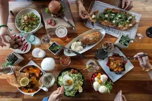 Very busy, to be expected in the heart of the city. We had clams, salad, broccoli, red tacos, and a hamburger. Broccoli was good, light dressing, clams had a good sauce, the salad was good, but a bit too much dressing, Red tacos very good but messy, burger, also messy and tasty, but not true smash burger. The carrot cake was disappointing, too wet, not cream cheese frosting, too sweet. They were out of salted caramel apple strudel - very disappointing.