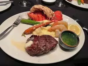 The steakhouse offers a great choice of steaks and sides as well as seafood and other meats. I loved their New York Steak, wife had the surf and turf Voodoo Menage A Trois Filet, lobster tail and shrimp. As my side I chose baked mac n cheese. We both had dessert. My only suggestion is they offer more alcohol free desserts. I had three choices, gelato, sorbet or CRÈME BRÛLÉE. I had cookies and cream gelato and she had mango sorbet. Jeff was our server and did a bang up job. We definitely would go back.