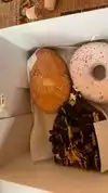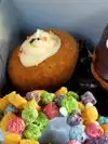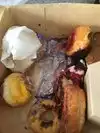 We masked up & ordered at the counter. Short line. No dine-in. Oh Captain My Captain was my nephew's choice. A donut topped with Captain Crunch cereal. I ordered the Portland Cream, a shell filled with Bavarian cream, topped with chocolate. So fulfilling. Tried the Dashing Pumpkin as treat. Pumpkin cake doughnut topped with cream cheese frosting, fall colored sprinkles and a dash of pumpkin spice. Delish! Perfect for the holidays. Plus, ordered the Dirt and Old Dirty B. We came home with a pink box! đ These donuts we bought were raised with yeast. They were fresh, moist, rich, & sweet.. prepare to belly- up! One donut does the job. Surely, will definitely return.