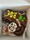 The donuts are decorated and a lot of fun. Definitely a cute place to visit when you're in Austin. We were there in October so everything was spooky. Cute.