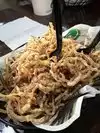 First of all, ditch your strip drinks before you get there. They won’t let you in with them. Bartender and server were kind enough to put the hockey game on for us. As it was my 65th birthday we mentioned that to the server and it meant nothing (just wait until he’s 65 ). The onion “rings” are unique and super tasty. Burgers were pretty average. Three years ago they had a turkey burger which was amazing but it’s no longer on the menu. The tater tot sampler flight was a lot of fun but the truffle fries were still the best. Not sure I’ll be back without that turkey burger.
